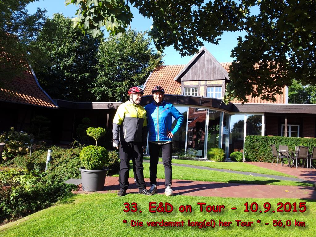 Seit Januar 2013 versuchen mein Nachbar Ernst und ich, nach einem gemeinsamen NeuJahrs-Vorsatz, wöchentlich zwei Radtouren von ca. 33-44 km zu fahren. Die Erfahrung hat jedoch gezeigt, dass es nur zu etwas mehr als 7 * 7 gemeinsame Fahrten im Jahr kommt. Das Wetter, Urlaub und berufliche Termine lassen einfach nicht mehr gemeinsame Touren zu.